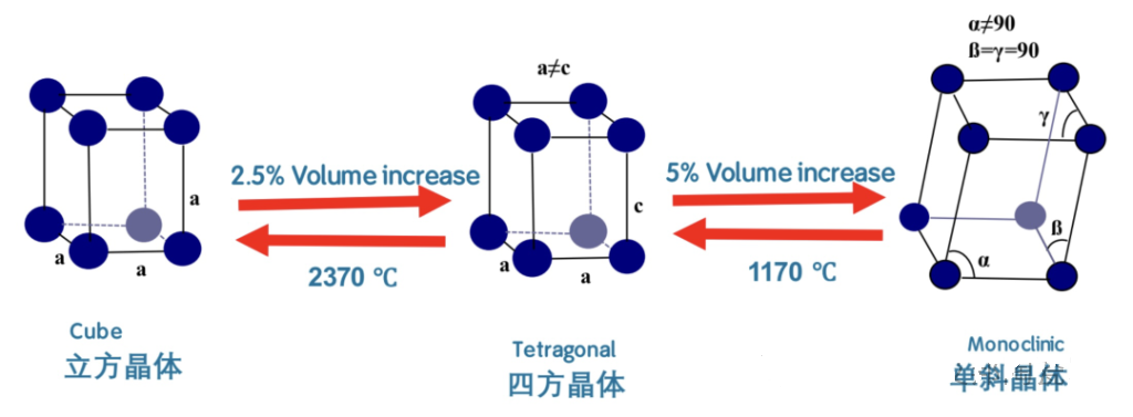 圖 氧化鋯晶體結(jié)構(gòu)及其相變,來源網(wǎng)絡(luò)